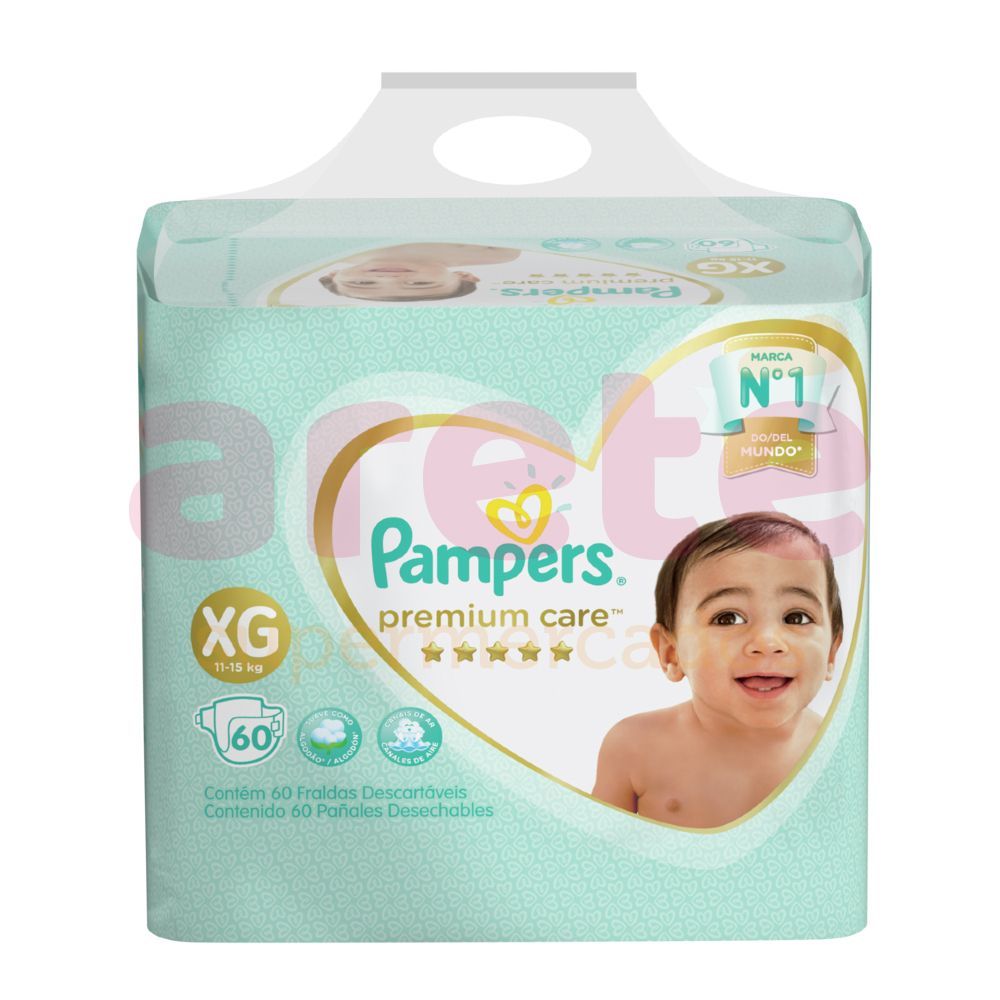PAÑAL PAMPERS PREMIUM CARE TAMAÑO XG 60UN