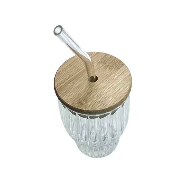 VASO C/RANURAS C/TAPA PAJITA 7X13CM VIDRIO REF 662