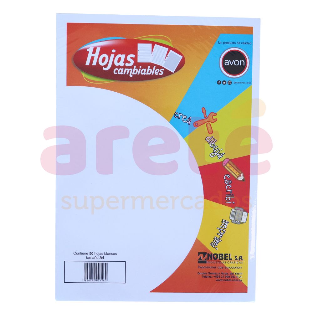 HOJA AVON REPUESTO OFICIO 2RAYAS X 50UNIDS