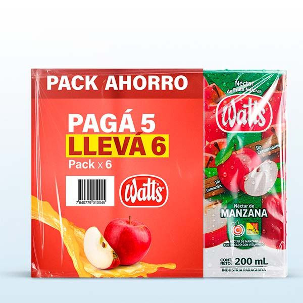 PACK DE JUGO MANZANA WATTS PAGUE 5 LLEVE 6 200 ML
