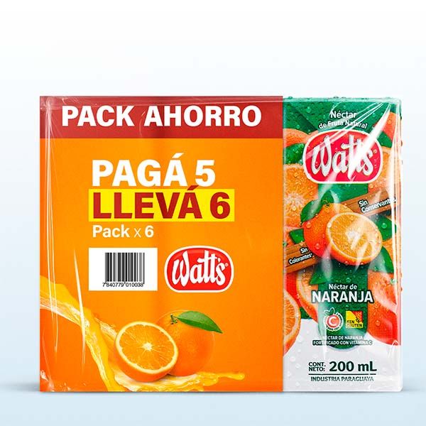PACK DE JUGO WATTS NARANJA PAGUE 5 LLEVE 6 200 ML